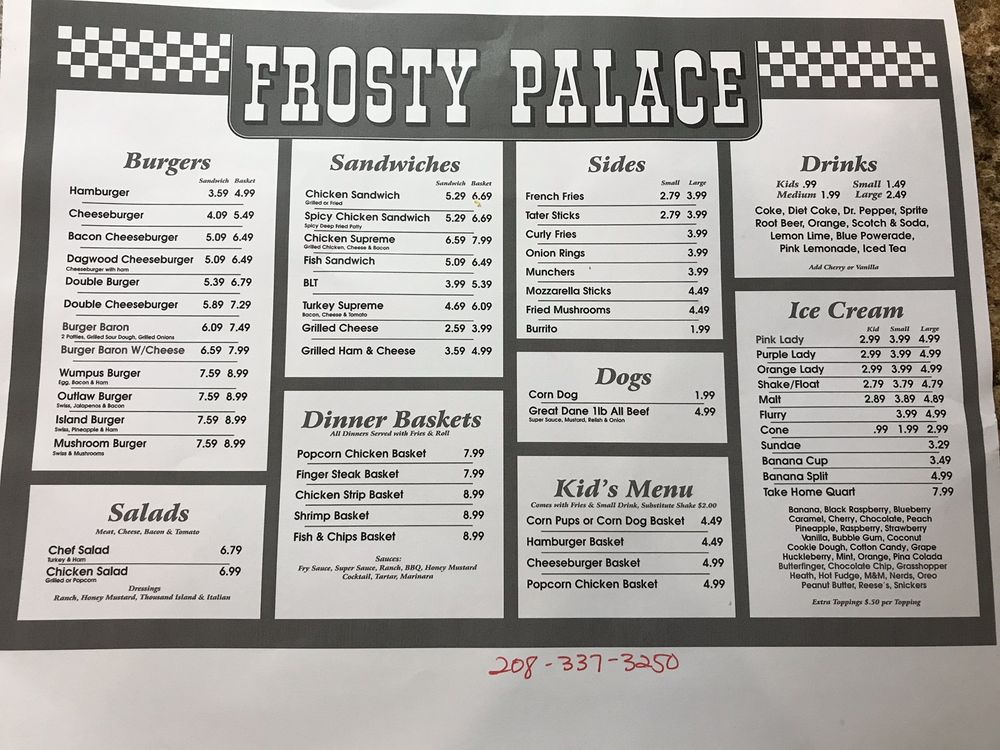 Welcome to Frosty Palace, an exciting New American restaurant located at 32 W Idaho Ave, Homedale, ID. This vibrant dining spot is perfect for all occasions, whether you're looking to grab lunch or enjoy a family dinner. With takeout, delivery, and catering options available, Frosty Palace caters to your needs with ease.